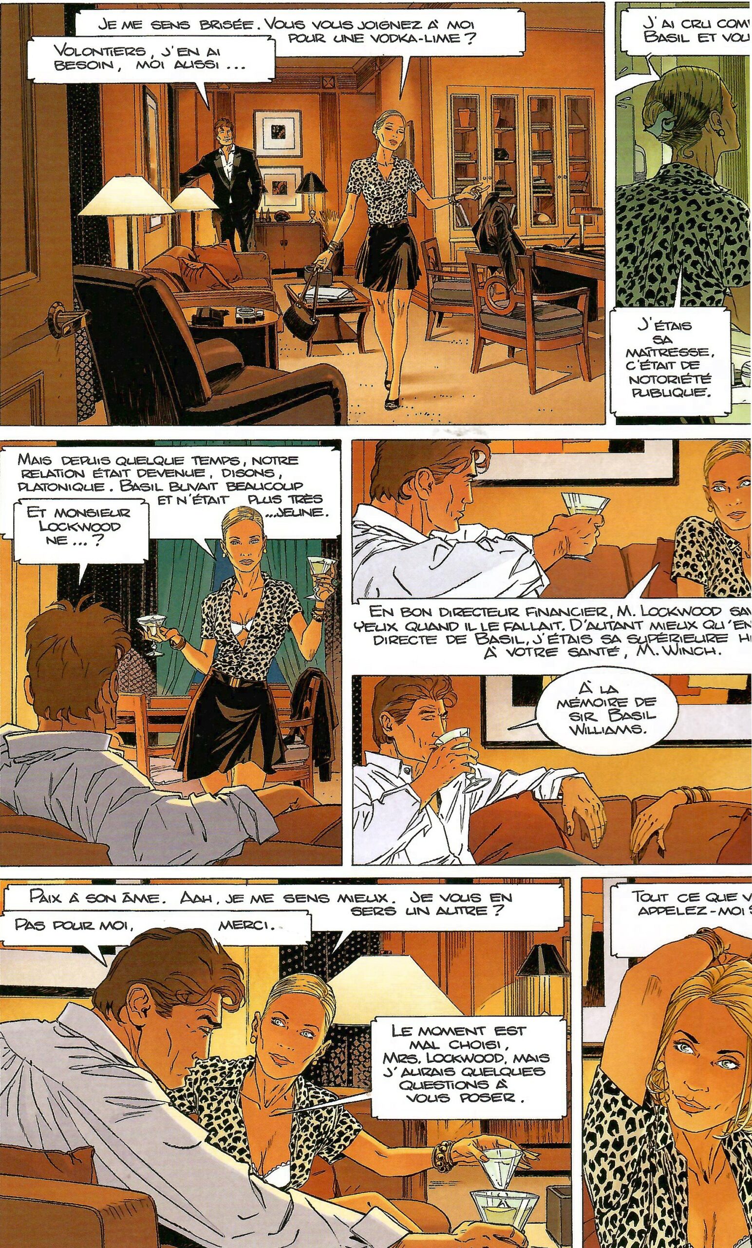 Largo Winch est le nom du héros principal. Orphelin d’origine mystérieuse, adopté dans son enfance par le milliardaire Nerio Winch, il devient, à la mort de celui-ci, l’héritier inattendu d’un empire colossal : le Groupe W, un conglomérat tentaculaire aux ramifications mondiales. Dès le premier album sous forme BD, L’Héritier, Largo se retrouve plongé au cœur d’une machination destinée à l’éliminer avant même qu’il ne puisse prendre la direction du groupe. Ce point de départ donne immédiatement le ton : la série est construite autour de complots, coups montés, rivalités économiques et luttes de pouvoir, le tout dans un univers globalisé.